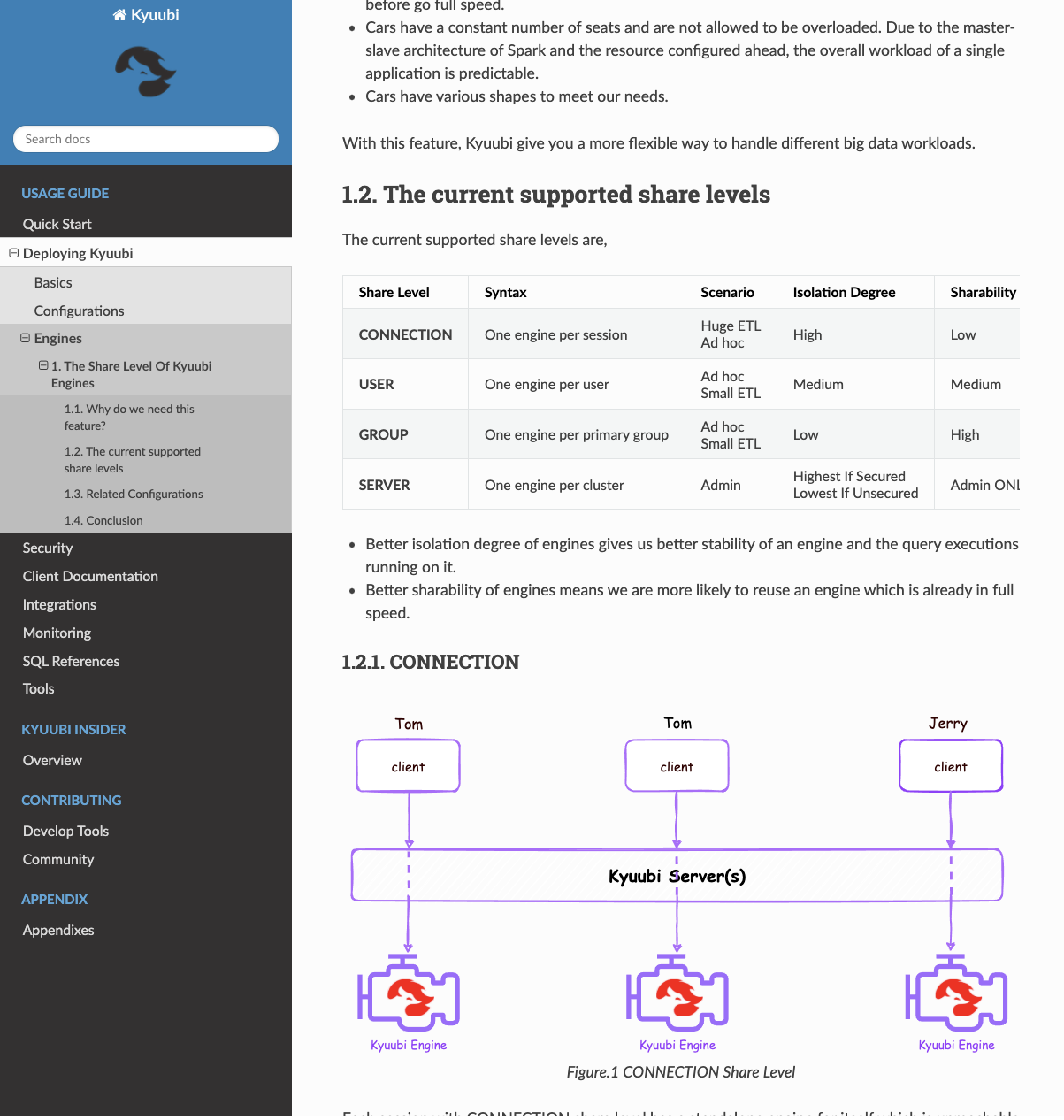 <!-- Thanks for sending a pull request! Here are some tips for you: 1. If this is your first time, please read our contributor guidelines: https://kyuubi.readthedocs.io/en/latest/community/contributions.html 2. If the PR is related to an issue in https://github.com/apache/incubator-kyuubi/issues, add '[KYUUBI #XXXX]' in your PR title, e.g., '[KYUUBI #XXXX] Your PR title ...'. 3. If the PR is unfinished, add '[WIP]' in your PR title, e.g., '[WIP][KYUUBI #XXXX] Your PR title ...'. --> ### _Why are the changes needed?_ <!-- Please clarify why the changes are needed. For instance, 1. If you add a feature, you can talk about the use case of it. 2. If you fix a bug, you can clarify why it is a bug. --> doc improvement ### _How was this patch tested?_ - [ ] Add some test cases that check the changes thoroughly including negative and positive cases if possible - [x] Add screenshots for manual tests if appropriate  ---  - [x] [Run test](https://kyuubi.readthedocs.io/en/latest/develop_tools/testing.html#running-tests) locally before make a pull request Closes #1399 from yaooqinn/sldoc. Closes #1399 d8bcce8a [Kent Yao] [DOCS] Add doc for engine share level 21e2548f [Kent Yao] [DOCS] Add doc for engine share level bba8dc9d [Kent Yao] [DOCS] Add doc for engine share level Authored-by: Kent Yao <yao@apache.org> Signed-off-by: ulysses-you <ulyssesyou@apache.org>