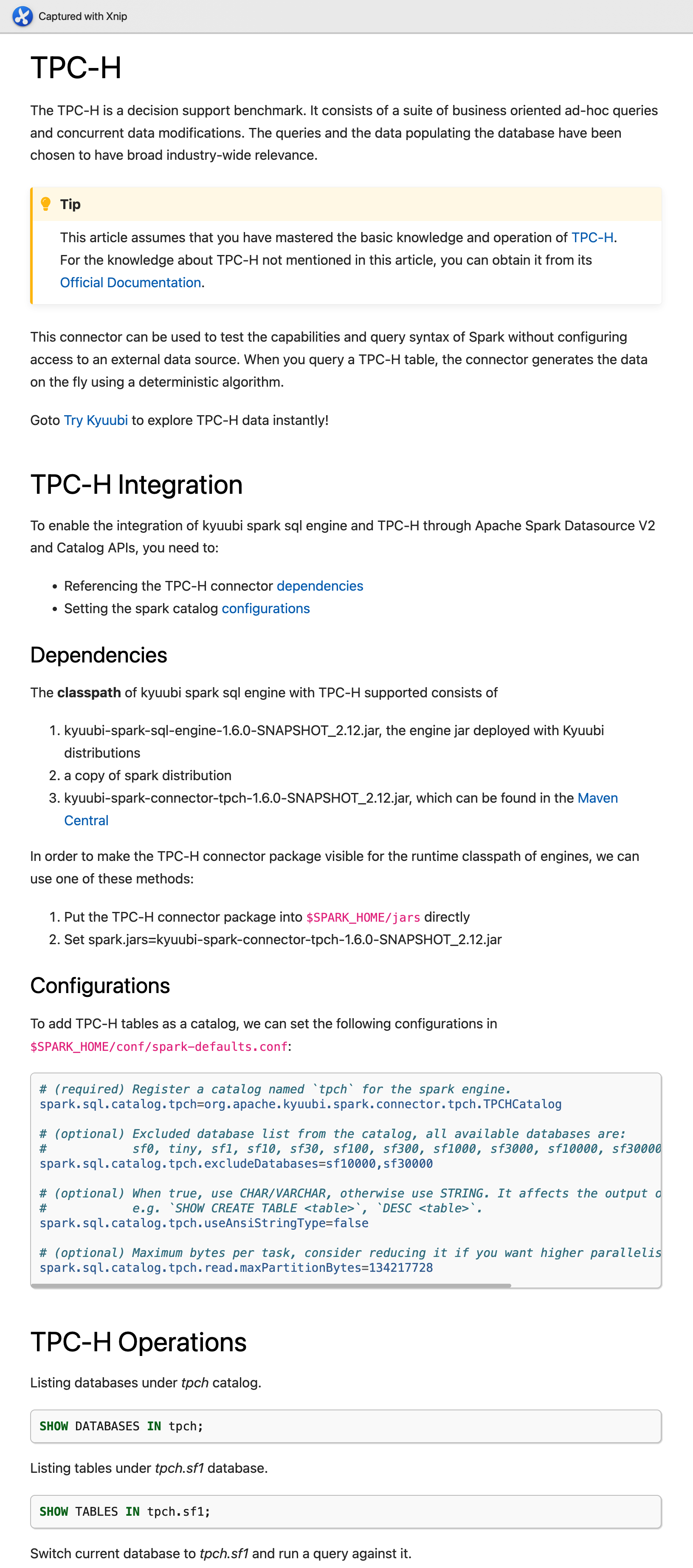 Document Kyuubi Spark TPC-DS connector