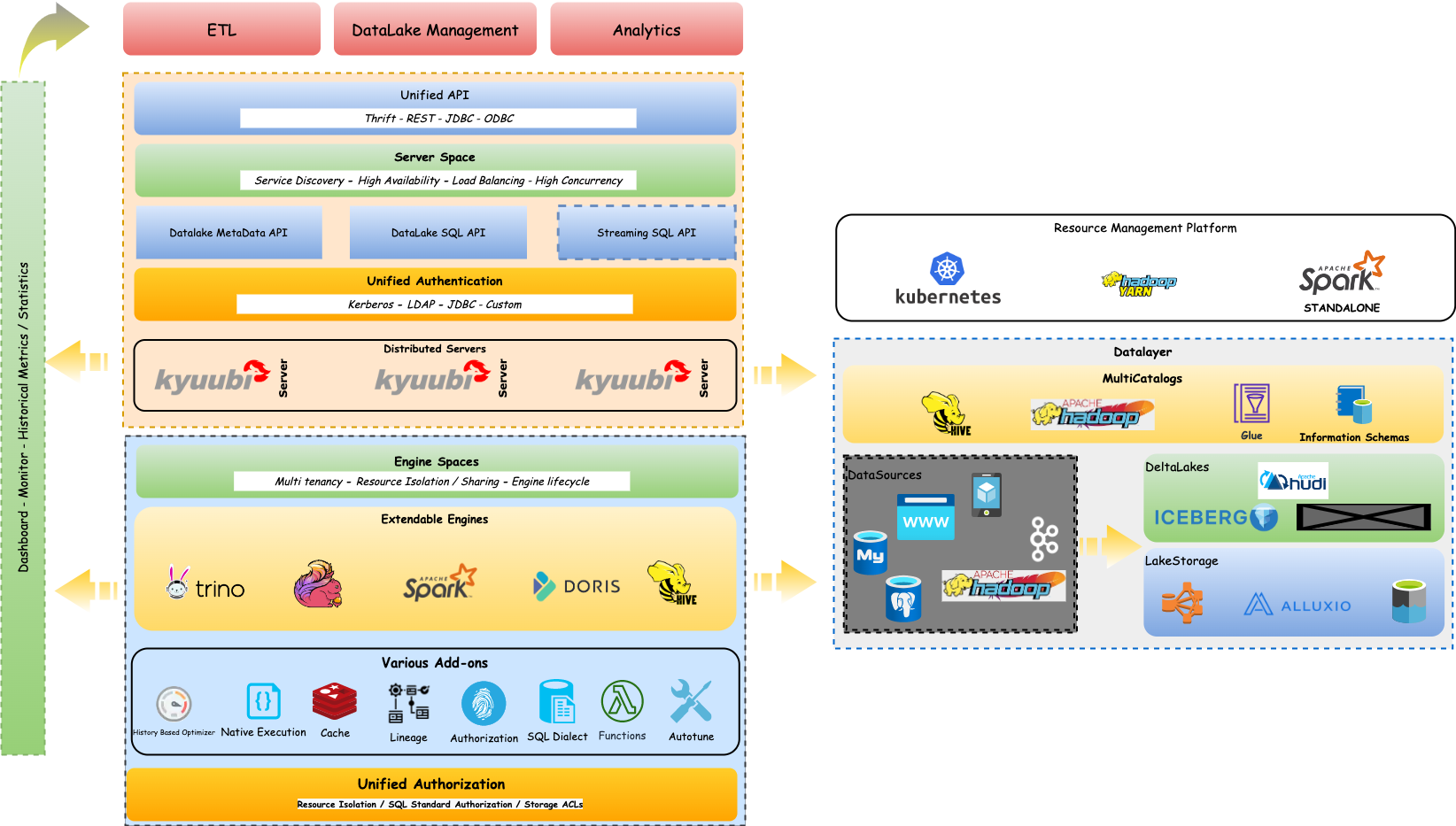 The figure below shows our vision for the Kyuubi Ecosystem. Some of them have been realized, some in development, and others would not be possible without your help.